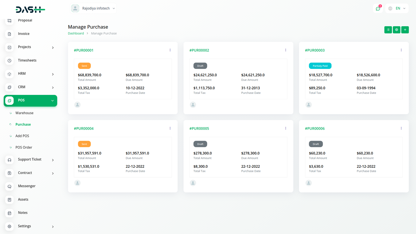 It is easy to record the purchases of each firm effectively with the help of barcodes. You can also view your purchase records through well-maintained data.POS allows you to keep a tab on the total as well as the monthly amounts of sales and purchases.